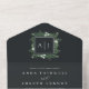 Our Greenhouse wedding invitation frames your initials with an elegant square border of lush green foliage, botanical leaves, and tiny white flowers. Personalize with your wedding details in classic lettering with a chic calligraphy script accent. A rich, inky off-black background provides a striking backdrop for your ceremony details. Attached RSVP card and folding style makes this all-in-one invitation an appealing choice. A beautiful choice for summer evening weddings, fall or autumn nuptials, or snowy winter weddings.