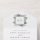 Our Greenhouse wedding invitation frames your initials with an elegant square border of lush green foliage, botanical leaves, and tiny white flowers. Personalize with your wedding details in classic lettering with a chic calligraphy script accent. Attached RSVP card and folding style makes this all-in-one invitation an appealing choice. A beautiful choice for summer evening weddings, fall or autumn nuptials, or snowy winter weddings.