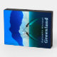 Whales with spears. Two male narwhal "tusking," crossing their tusks, with sea ice and the mainland of Greenland in the background. Text reading "Greenland" and "Kalaallit Nunaat" (Greenland in Greenlandic) also appears. The purpose of tusking, a common activity during warmer parts of the year, is unknown. It may be a friendly greeting or a way to remove lice that typically infest the base of the tusk. Even the ultimate purpose of the spiraled tusk is not known for sure. It may serve the same purpose as deer and moose antlers, the peacock's tail feathers, or a lion's mane - to attract a mate. Some researchers believe it may serve as a sensory organ. Perhaps it serves more than one purpose.