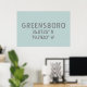 Minimalist poster with Greensboro NC city latitude and longitude decimal map coordinates in modern gray industrial font on light blue background