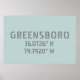 Greensboro NC Latitude and Longitude Coordinates Poster