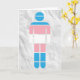 A greeting card for a transgender guy, featuring a A bold and eye catching design of a human gender icon in the colors of the trans pride flag, editable text inside