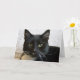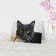 This is my gorgeous cat, Lilly. She is aware of her beauty, but it hasn't gone to her head. Her black face has startlingly white whiskers, a few wisps of white in the ears and one white spot like a dab of milk on one upper lip. Her black back and white bib make her a classic "tuxedo cat." Light, sea green eyes regard the viewer in a direct look into the camera. She leans against a white, knitted background. Copyright Gail Storrs 2010.