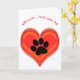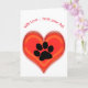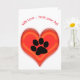 Paw print in center of a three dimensional red heart. Text reads "With love ... from your pet" and may be changed. Inside is blank.