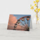 This is a greeting card with a photograph of a ferris wheel. The sun is setting and it's the golden hour complete with pink clouds.