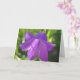 Greeting map with purple bellflower bloom, with which one sees the Weis-orange bloom stamp in the cup. Label on the back: have A wonderful day. Both inside of the map are in blank.
