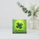 A stylish St. Patrick's Day motif with a large, green four-leaf clover in the center, surrounded by a natural, festive atmosphere. The soft light accents and floating shamrocks give the image a magical and cheerful feel, fitting for the Irish holiday.