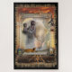 African Savannah with golden sunsets mother and child, animals on an vintage scroll