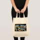 The printing came out very well, better than I had anticipated. The natural color fabric is sturdy with strong seams and comfortable handles. This tote fits easily over my shoulder. As it is filled, the bottom flattens out--very cool! I would buy this product again. This grocery tote holds a lot of groceries! The image quality was very good. The colors were a little darker than I had expected. The darkness may have been due to printing on a natural color fabric rather than on white. The cat design is attractively centered on the tote. The spirit of the design is very lively, just as it appears on the Zazzle website.