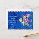 Greetings from beautiful Sanibel Island Florida postcard. A bright colorful fancy fish wears colors of the rainbow, including fuchsia pink, aqua and sapphire blues, and golden yellow. The background is a rich combination of amazingly luscious blues with a wonderful painted appearance.
