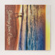 Puzzle representing a happy couple walking the dog by the water on the beach early morning, just after the sunrise, in Cancun, Mexico. The text reads "Greetings from Cancun" and it's totally customizable.