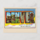 This vintage postcard reproduction features large letters filled with iconic images of Denver Colorado.