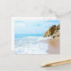 Postacrd with rock, beach and sea and with „Costa Brava“ sign.