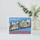 Capture the sunny charm of Southern California with this vibrant vintage-style "Greetings from Long Beach, California" postcard! This classic large-letter design features the city name in bold, eye-catching script set against a bright blue background with bold red lettering for the state. Inside the block letters, you'll find scenic vignettes of Long Beach life, including the famous shoreline, towering palm trees, the downtown skyline, and relaxing beach scenes. This design perfectly embodies the mid-century travel aesthetic.