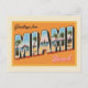 Send a piece of sun-drenched nostalgia with this vintage-style postcard featuring Miami Beach. The large, retro-inspired lettering highlights classic beach scenes, from palm trees swaying in the breeze to people enjoying the sand and surf. With its warm colors and classic design, this postcard captures the laid-back, retro charm of a quintessential beach vacation. It's a perfect memento for visitors or anyone who loves the vibrant energy of Miami Beach.