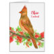 A blank greeting card decorated with a female cardinal bird perched on a flowering branch with red flowers drawn with ink and painted with watercolor. Inspired by the state bird and state flower of Ohio. You can edit or remove the text to fit your needs.