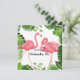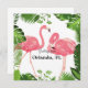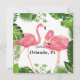 Greetings from Orlando, Florida. Colorful design with pink flamingos and tropical green leaves.