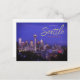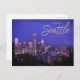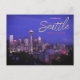 Greetings from Seattle Washington! This postcard features the bright night lights of the city.