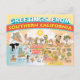 Bright and charming greeting card shows a whimsical cartoon of Southern California - cute characters enjoy the warm California sun who shines high above it all.