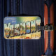 A classic, retro postcard greeting from Vermont repurposed on a luggage tag.