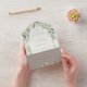 A combined wedding invitation and response card (with meal options). Featuring hand painted snowberries and stems of eucalyptus arranged into beautiful botanical elements and frame against a greige outer and cream inner background. All text is fully editable, and the scattered dots on the front and back can be deleted before ordering if you would prefer. Please view this Collection in my store for versions of this product with alternative wording options, in different colors and for coordinating items.