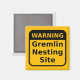 Warning - Gremlin Nesting Site - warning sign style magnet in black and yellow.