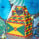 The Grenadian flag is a red field devided by two triangles of yellow and two of green with in the center a red disk with a yellow star on it and on the bottom and top are three yellow stars. The used colors in the flag are red, green, yellow. The proportion of the Grenadian flag is 3:5. The Flag of Grenada was adopted in 1974. The first use of the current flag design was in 1974. The last change to the current Grenadian flag design was in 1974.