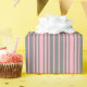 This wrapping paper design features stripes colored grey and light pink. It might be fun to use wrapping paper like this when preparing presents or gifts being given in celebration of a birthday, a wedding, an anniversary, or some other event.