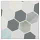 honeycomb pattern fabric featuring an elegant modern color scheme with watercolor pastels and a dominant serene grey.
