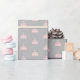 Gray wrapping paper with pink circus tents. This paper is very cute for wrapping your baby gifts.