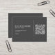 Make connections effortless with this sleek grey and black QR code business card. A clean, modern layout highlights a scannable code area alongside clear space for name, role, web address, email, and phone, perfect for directing contacts to a website, booking page, portfolio, or socials. The high contrast grey background details deliver a bold, professional look while remaining simple and uncluttered. Upload an existing QR code, or request help to generate one and have it placed on the card. Please note the silver/grey color is printed.