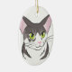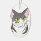Grey and White Cat Ceramic Ornament
