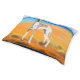 LOVE, love, LOVE this doggy pillow/bed. I purchased this dog bed a few years ago, in a different design, so I know it is a quality dog bed. The cover zips off for easy laundering and it doesn't shrink or pill after multiple machine washings. I use it at the end of the chaise section of my sofa as a bed for my dog and to help keep the sofa clean where she lays. I uploaded this photo design with her name and a picture of her sleeping on another pillow on our bed, with waves added in because I just know she's dreaming of being on the beach. When I received this new one, I replaced the old one on the sofa and Sara immediately laid down on it and knew it was for her. If you have a larger dog (Sara is about 25lbs) you'll want to order the larger size. Zazzle's printing and colors are always perfect. I'm a photographer, and I know how I expect the colors to come out, and they always do with Zazzle.