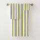 I ordered these towels because I am getting ready to stage my house for sale and wanted some really pretty towels to show off the bathroom. These are an absolutely perfect match for the teal walls and I could not be more pleased. Not only do they look beautiful, they also seem to be very good quality. They are different than any other towels I've had, as the surface fibers are not looped. I love that because I have never liked how most towels have loops that snag and pull no matter how careful you are. I pre-washed them and they came out beautifully. The towels are generously sized and they don't feel flimsy at all. I did not read the description well enough to understand I was paying as much as I was paying for just exactly what was pictured: not a set of two, but a single towel, hand towel and washcloth, so they are way more expensive than I thought (which was a lot, considering). However, I still love them enough that I went ahead and ordered a single additional bath towel so that I would have an actual set, but will need to buy a couple of solid color washcloths. Pricing is weird, because a single wash cloth is priced higher than a large bath towel?? Anyway, if you can afford them, these towels are fantastic. I would never pay this much except to show off a house for sale, but now that I've done it I will love them in my new home as well. Gorgeous! Vibrant Colors and exactly as pictured,..maybe evern better!