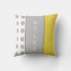 The front has a yellow stripe in the middle and the back of the cushion has a grey middle stripe.