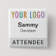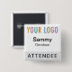 Grey Attendee Name Badge with Logo Pinback Square Button