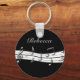 Grey black and white musical notes score keychain
