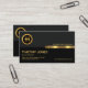 A gold sound equalizer logo you can use, is at the top followed by a slogan caption just above the gold stripe. Below the gold stripe lies your prestigious name, job title and the contact details. The business URL sit in the opposite direction against the right wall.