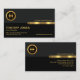 Overleaf, the same design theme is used with the gold logo at the top and the business name just above the gold stripe. The black layer has the contact details and slogan option to publicize your services.