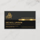 Overleaf, the same design theme is used with the gold logo and your prestigious name at the top. The black column underneath houses the contact details and a slogan caption. All lettering for this card are in faux gold.