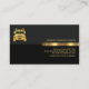 A grey and black column layered design is accentuated by a faux gold stripe near the center. Riding this gold piece of success is your prestigious name and job title with a gold semi truck logo you can use on the left. In the black layer, is your business name and the contact details. A slogan to advertise your services is available towards the lower right corner.