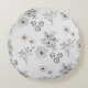 Grey Black Retro Y2K Hippie Flower Pattern Round Pillow