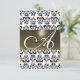 GREY BLACK WHITE DAMASK GEM MONOGRAM rsvp silver Invitation