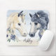 Grey blue horse with flowers personalized name mouse pad, a lovely gift for horse equestrian lovers.