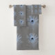 GREY BLUE PEACOCK FEATHERS BATHROOM TOWEL SET