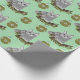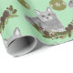 Grey Cat Pattern with Green Ornaments Wrapping Paper
