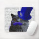 Grey Cat With Blue Top Hat and Blue Moustache Mouse Pad