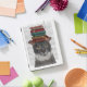 Grey Cat with Books on Head by FabFunky. Features a cute grey cat looking scholarly with books stacked atop its head. | 191385D