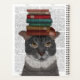 Grey Cat with Books on Head by FabFunky. Features a cute grey cat looking scholarly with books stacked atop its head. | 191385D