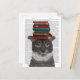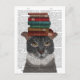 Grey Cat with Books on Head by FabFunky. Features a cute grey cat looking scholarly with books stacked atop its head. | 191385D